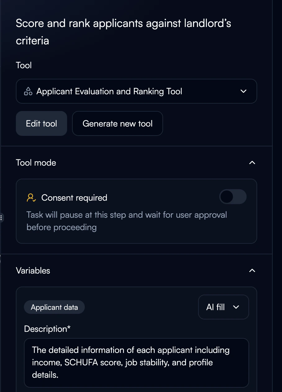 Variable fill methods define how data populates into tool parameters at runtime. Choosing the correct fill method ensures smooth data flow and accurate results.Linked