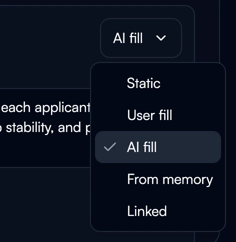 AI automatically extracts or infers values from available context (conversation history, documents, memory). How It Works:- Agent analyzes all available context
