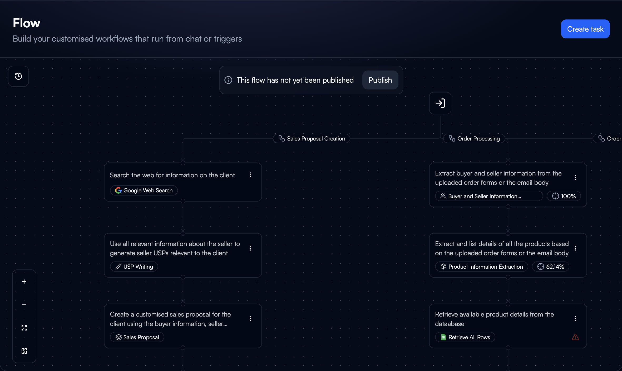 Every Agent Has a Flow: Regardless of creation method, all agents execute through workflows. Templates and chat-based agents provide pre-built flows you can modify, while custom agents start with an empty canvas where you build the flow from scratch.