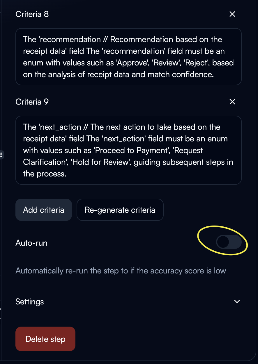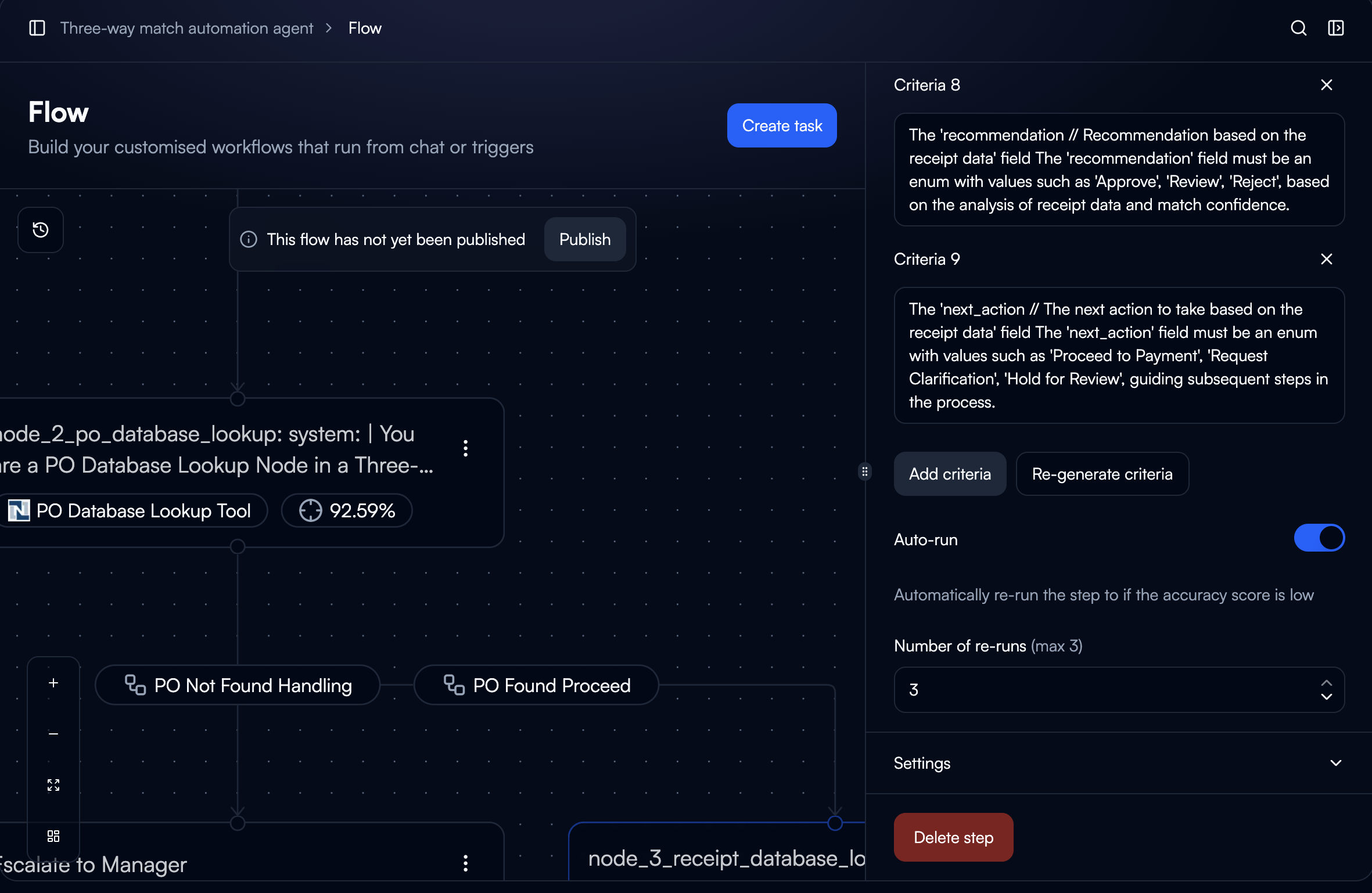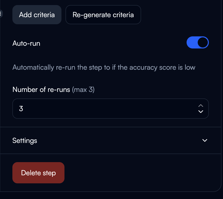 Automatically retry steps that don’t meet evaluation thresholds without manual intervention.