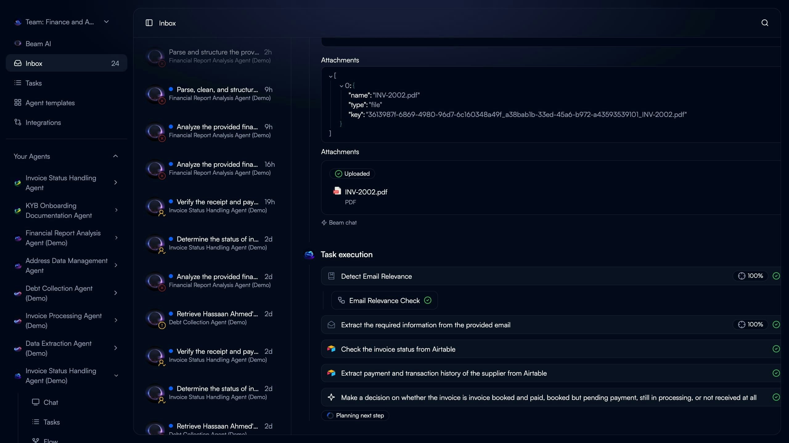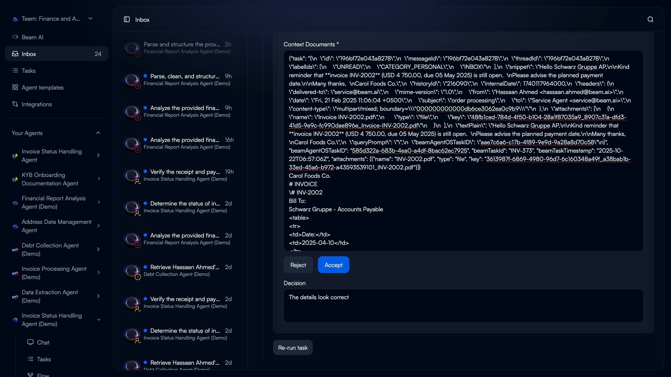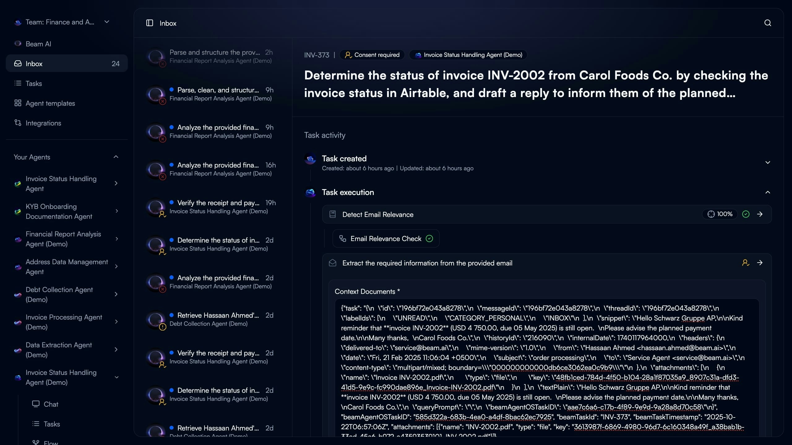 Click any inbox item to see complete execution context and take action.